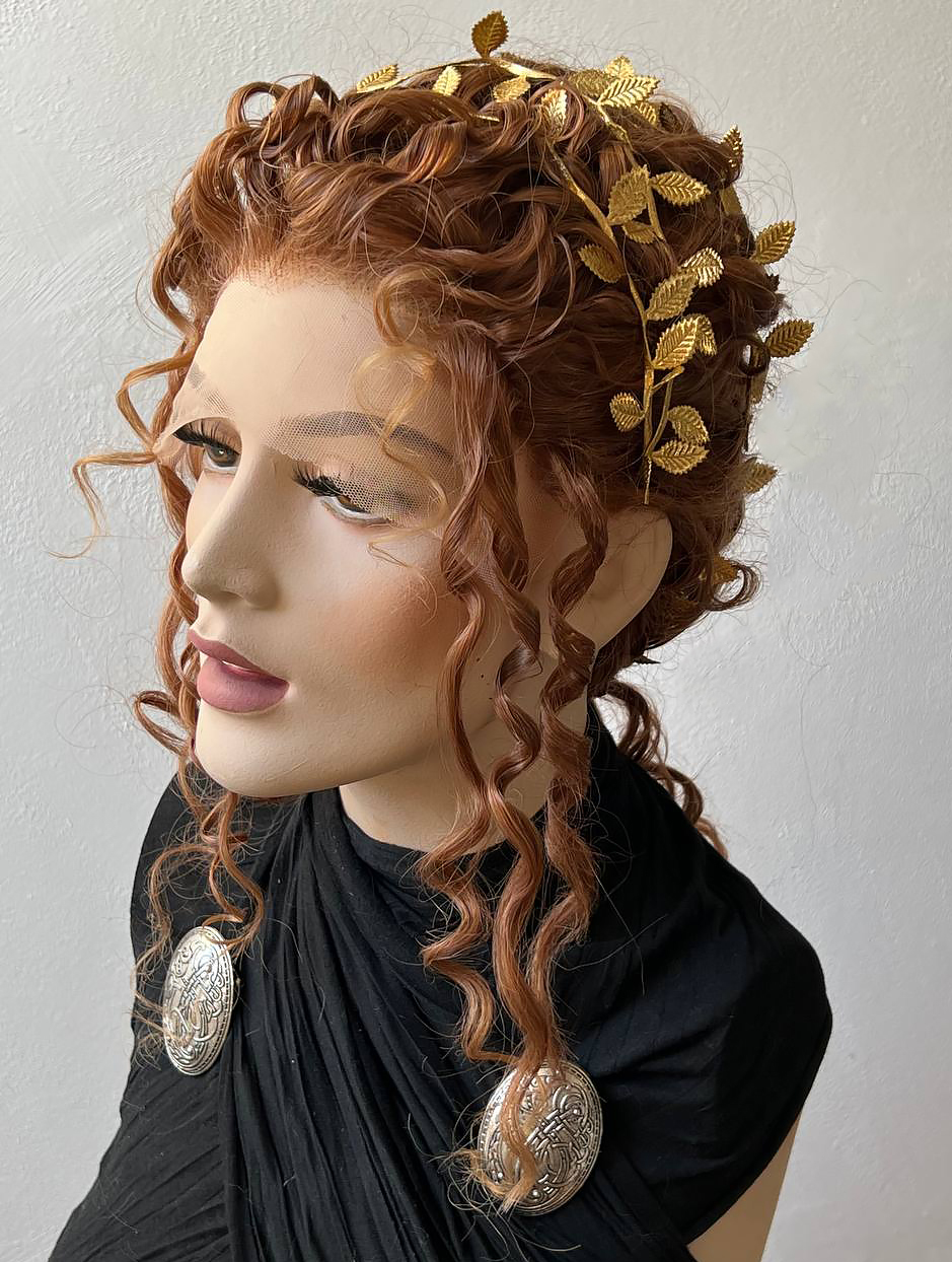 Transform into a vision of divinity with this braided wig, inspired by Greek mythology and Roman elegance. Perfect for cosplay costumes, renaissance fairs, or ren faire events, this wig embodies the grace of a goddess with hints of fairycore and Byzantine charm. Ideal for fans of timeless beauty and mythological aesthetics, it’s a stunning addition to any fantasy wardrobe.