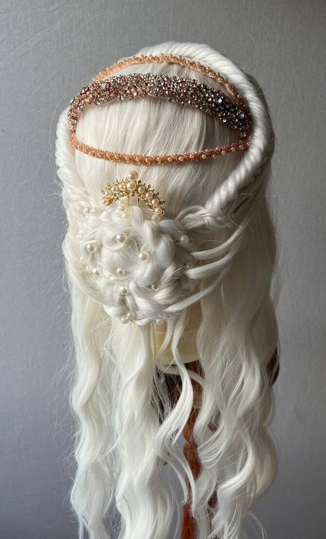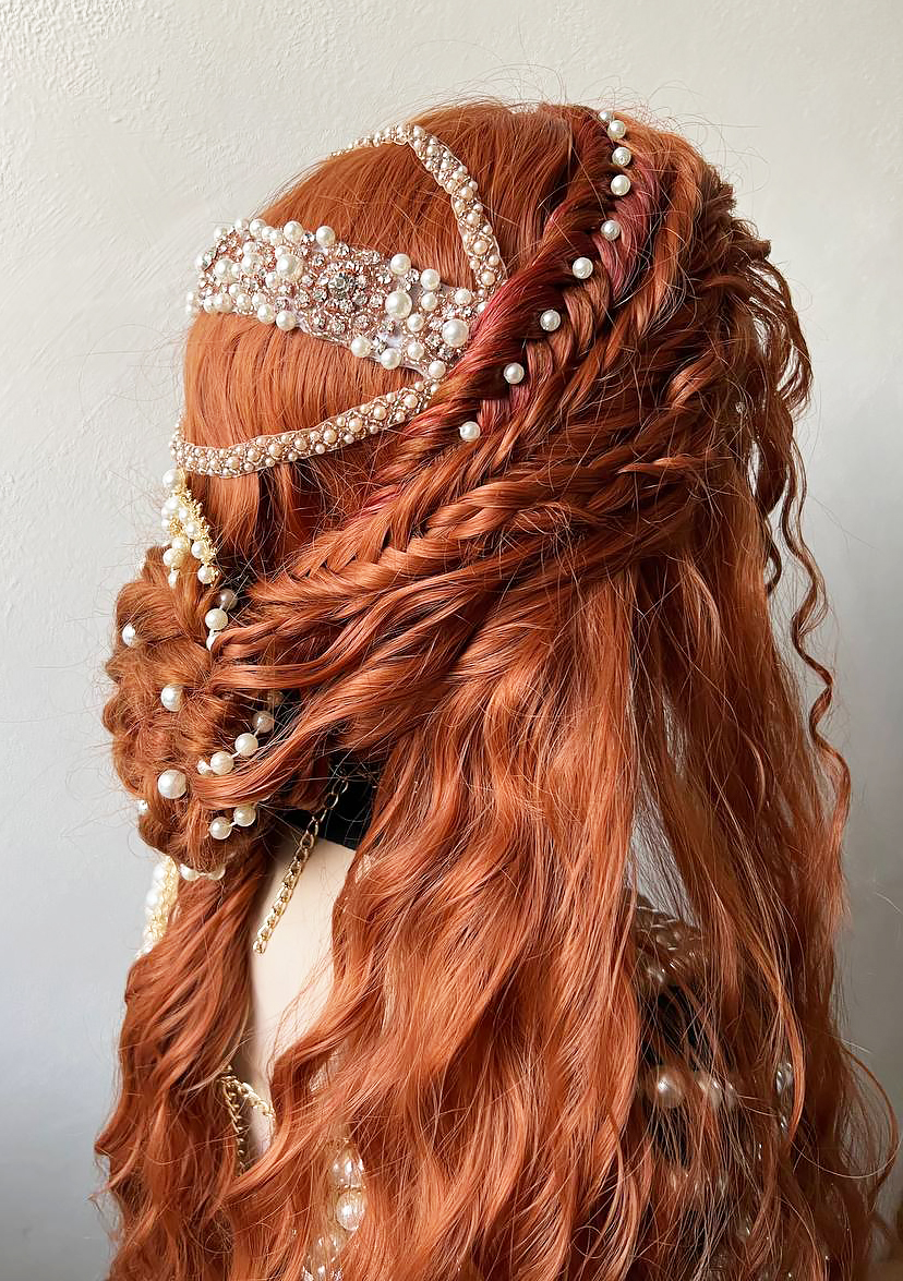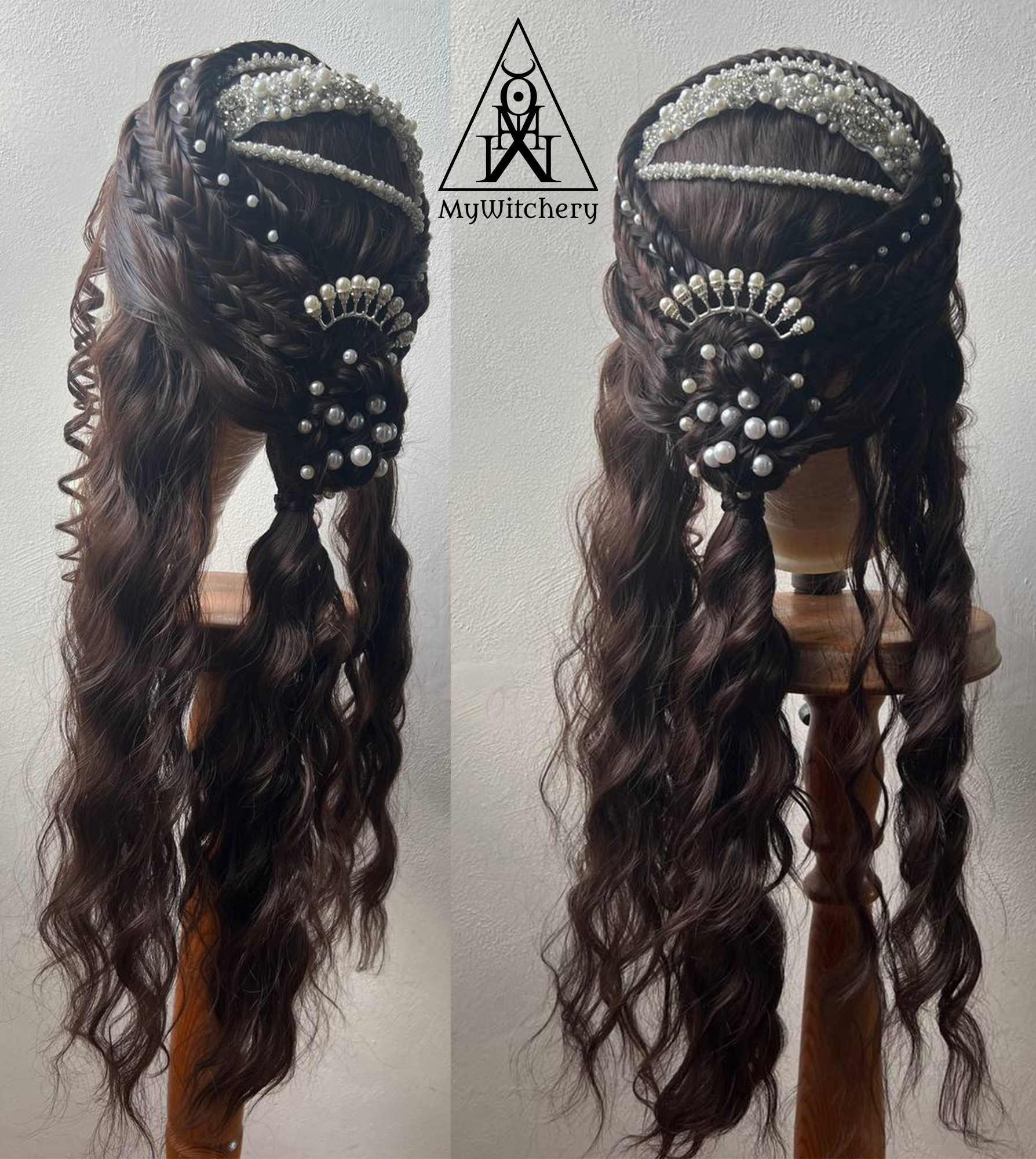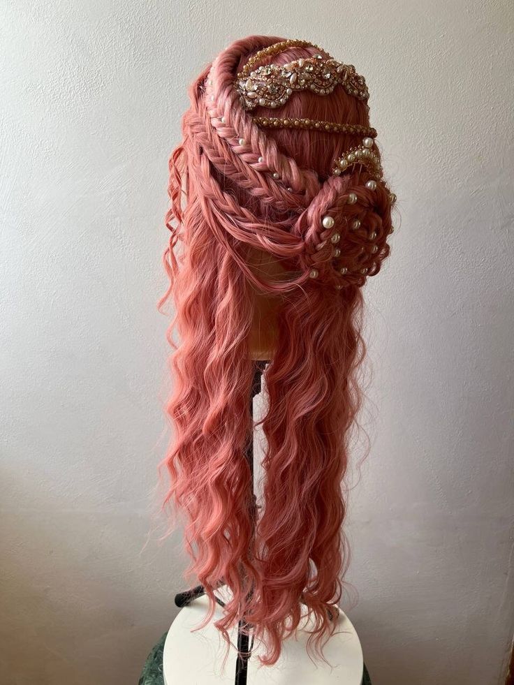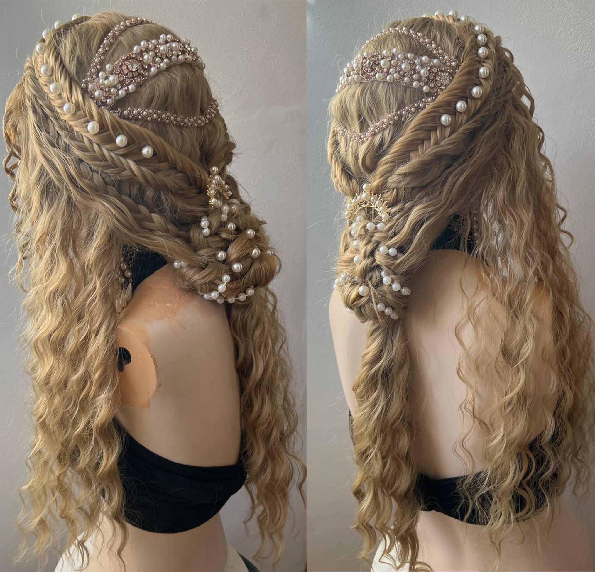 Elevate your fantasy look with this hand-braided lace front synthetic wig, inspired by medieval and renaissance styles. Perfect for renaissance fairs, ren faire events, and cosplay costumes, this braided wig adds a fairycore elegance to any festival outfit. Its Rapunzel-like charm makes it a must-have for fantasy lovers or anyone seeking a magical addition to their wardrobe.
