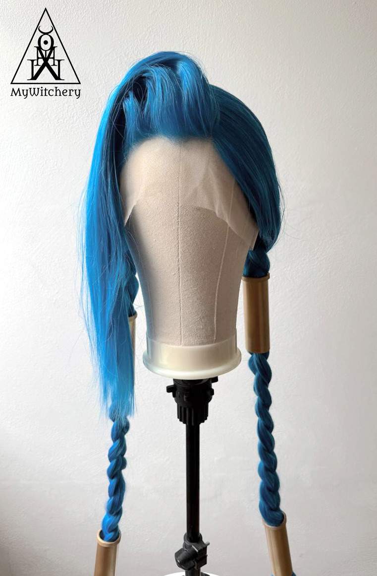 Unleash your inner chaos queen with this stunning Jinx-inspired long blue wig, designed for fans of Arcane and League of Legends. Featuring vibrant synthetic fibers, long twin braids, and stylized bangs, this wig is perfect for cosplay events, conventions, drag, Halloween, or bold editorial shoots.