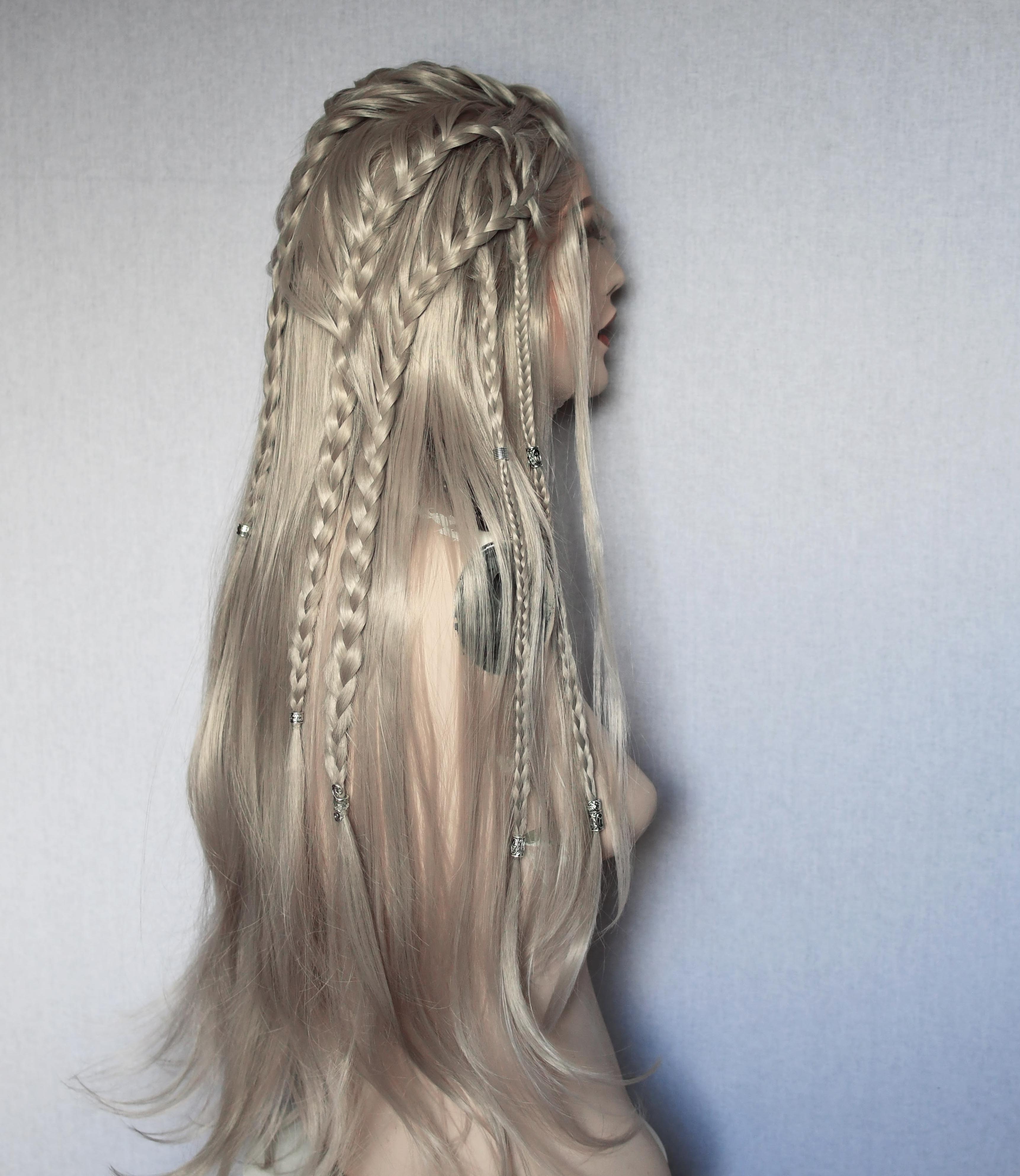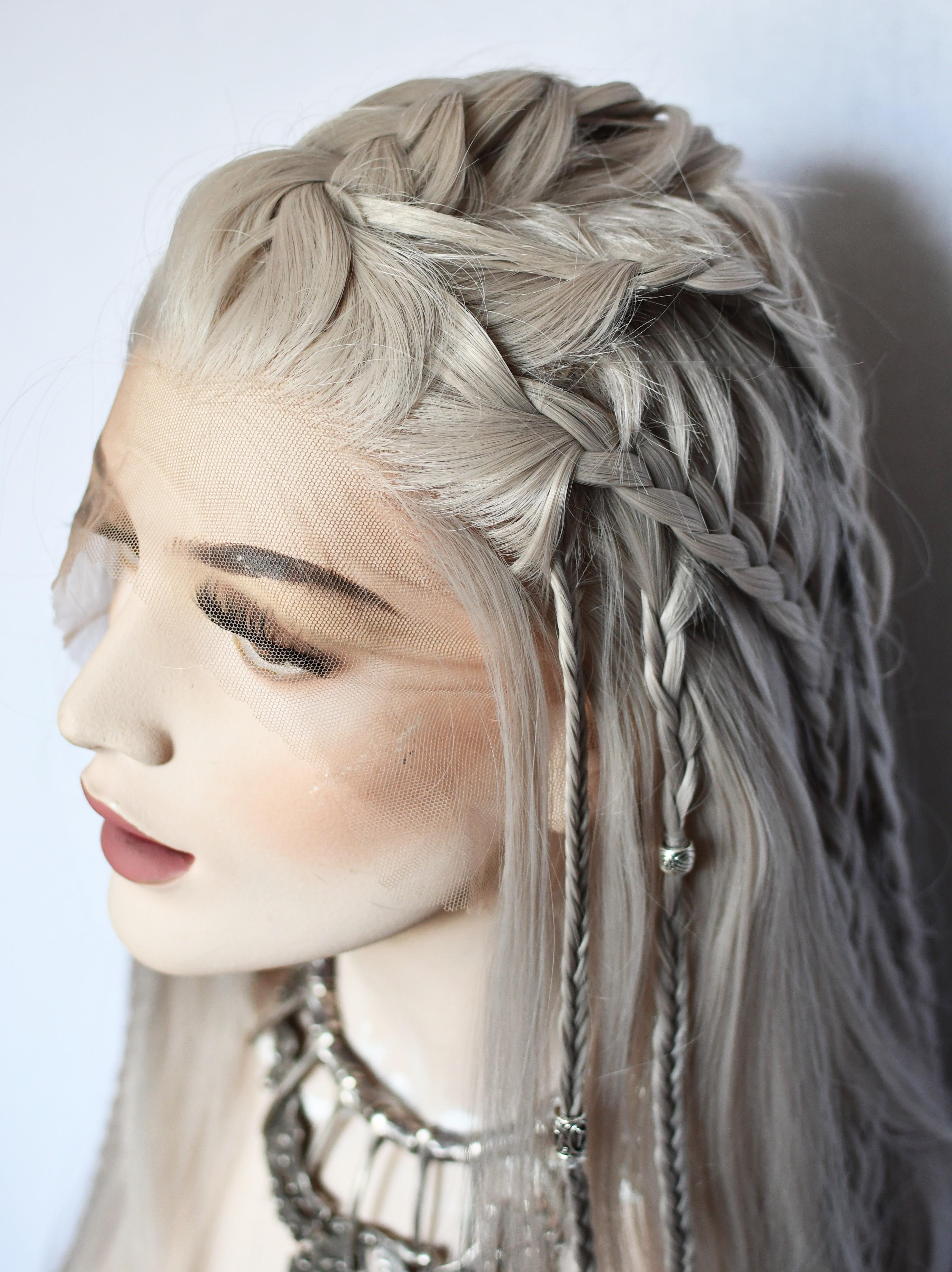 Step into the world of myth and legend with this braided Viking wig, designed with intricate braids and rugged charm. Perfect for Viking costumes, renaissance fairs, and festival outfits, this wig is ideal for fans of Dungeons and Dragons, LOTR, or Celtic and druid-inspired aesthetics. A must-have for any fantasy lover or as a thoughtful Viking gift, this braided wig completes your look with timeless elegance.